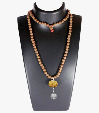 Design- Rudraksha Made In Pure 925 Silver Caps + Silver Goddess Durga Yantra Attached With 5 Mukhi Indonesian Rudraksha Mala.