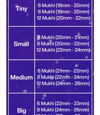 6 Mukhi Rudraksha- 6 mukhi Rudraksha is the center of the power of Lord Shiva's second son, Kumar Kartikeya. It gives wisdom and knowledge and increases will power and learning capability. Moreover, it saves us from the worldly sorrows. Six Face rudrakshas helps to build and increses emotional charecter. These charecter like Love ,Kindness , Attraction Etc will be good and strong... 8 Mukhi Rudraksha- The Eight mukhi rudraksha is a rare bead and it is available in lesser number than seven mukhi rudraksha. Eight mukhi rudraksha is blessed by Lord Ganesha . Eight faces rudraksha have the energies for success and destroyer of evils and obstacles. Eight face is a vital instrument in strengthening one s will power and converting even an enemy into a friend.... 12 Mukhi Rudraksha- Twelve mukhi bead is ruled by Sun(Surya). It is held to cure diseases such as right eye defect, headeache, heart disease, bone fracture, skin disease, bowel problem, fever, appendictis, stomatitis, dyspesia, lung disease etc. caused by the maletic effects of Sun. Beneficiary for Virgo(kanya). Twelve mukhi Rudraksha bead is governed by Lord Vishnu. the source of vitality and the physical make up.