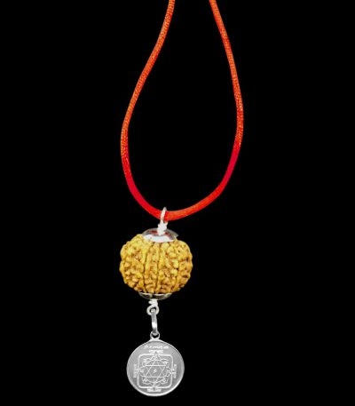 Design- Rudraksha Made In Pure 925 Silver Caps + Goddess Durga Yantra In Silver With Red Thread.