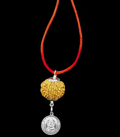 Design- Rudraksha Made In Pure 925 Silver Caps + Lord Ganesh Yantra In Silver With Red Thread.