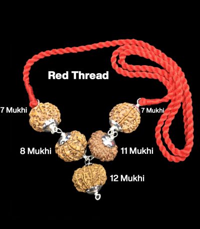 Seven mukhi rudraksha is symbol of saptamartika. It also worshiped as saptarishi. Seven face is benefial for business and service career. Good health and wealth is blessed to them who wears seven mukhi rudraksha. By wearing seven face Rudraksha man can progress in business and service and spend his life happily. It helps the wearer in overcoming financial crisis.Eight faces rudraksha have the energies for success and destroyer of evils and obstacles. Eight face is a vital instrument in strengthening ones will power and converting even an enemy into a friend. It is very useful in new work/venture to bring good fortune in work and businesses or services. It is also the demolisher of arrogance, egoism and pride when adorned.Eleven Mukhi Rudraksha is available in round or oval shape. This Rudraksha helps in controlling anger and cultivating patience. It increases self-esteem and courage of a person, and makes him brave and fearless. It increases self confidence and self-esteem of a person.Twelve mukhi Rudraksha bead is governed by Lord Vishnu. the source of vitality and the physical make up. Wearing twelve mukhi improves variety of traits in an individual, both physical and psychological which helps them to move continuously with brilliance.