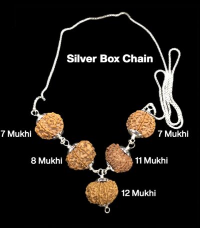 Rudraksha Combination for Business Power (Executives & Businessmen) 7,7,8,11,12 Mukhi Nepal in Silver Chain