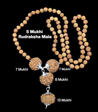 Rudraksha Combination for Business Power (Marketing & Trading) 7,7,8,13 Mukhi Nepal in Rudraksha Mala