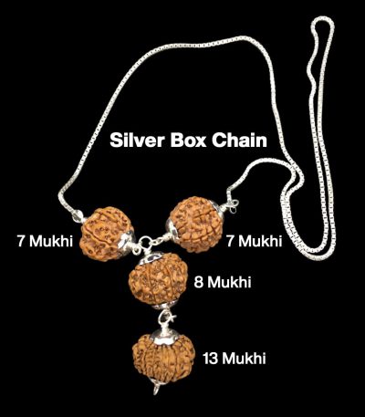 Rudraksha Combination for Business Power (Marketing & Trading) 7,7,8,13 Mukhi Nepal in Silver Chain