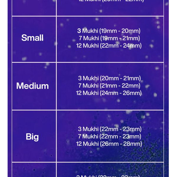 Three faced Rudraksha is symbol of three Gods form as Lord Brahma, Vishnu and Mahesh (Shiva). Ruling deity of three faced Rudraksha is Agni and ruling planet is Mars. person It Gives tremendous strength and power to face any difficult situation of life. It cures depression, anxiety, amnesia, epilepsy and helps making body robust. Seven mukhi rudraksha bead is ruled by Saturn(Shanidev) & this bead represents Goddess Mahalaxmi. . Seven face is benefial for business and service career. Good health and wealth is blessed to them who wears seven mukhi rudraksha. By wearing seven face Rudraksha man can progress in business and service and spend his life happily.Twelve mukhi bead is ruled by Sun(Surya).. Wearing twelve mukhi improves variety of traits in an individual, both physical and psychological which helps them to move continuously with brilliance and strength in their life.