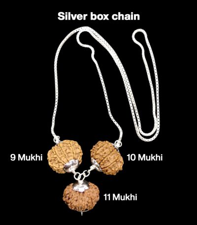 Rudraksha Combination for Total Protection 9,10,11 Mukhi Nepal in Silver Chain