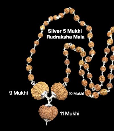 Rudraksha Combination for Total Protection 9,10,11 Mukhi Nepal in Silver Mala