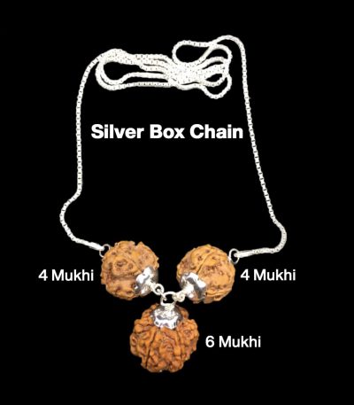 Rudraksha Combination for Students 4,4,6 Mukhi Nepal in Silver Chain