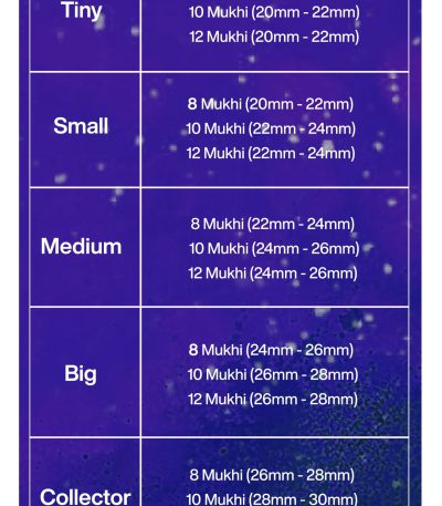 8 Mukhi- The Eight mukhi rudraksha is a rare bead and it is available in lesser number than seven mukhi rudraksha. Eight mukhi rudraksha is blessed by Lord Ganesha . Eight faces rudraksha have the energies for success and destroyer of evils and obstacles. Eight face is a vital instrument in strengthening one will power and converting even an enemy into a friend. 10 Mukhi- Ten mukhi Rudraksha represents lord Vishnu This Rudraksha is helpful in all respiratory diseases if taken with milk in parts form. This is very helpful in chronic cough and asthama. Its wearer is protected from all type of attacks from weapons. Twelve mukhi Rudraksha bead is governed by Lord Vishnu. the source of vitality and the physical make up. Wearing twelve mukhi improves variety of traits in an individual, both physical and psychological which helps them to move continuously with brilliance.